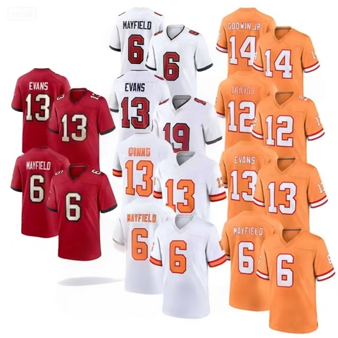 Barato al por mayor de calidad superior Tampa Bay Jersey 13 # Evans 6 # Mayfield 14 # Godwin Gr 12 # Williams VP Limited cosido Jersey camisas Top