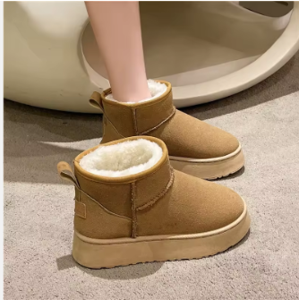 Botas de nieve cálidas de invierno baratas, zapatos marrones para mujer, zapatos de nieve planos de marca famosa, zapatos cómodos de piel auténtica para exteriores