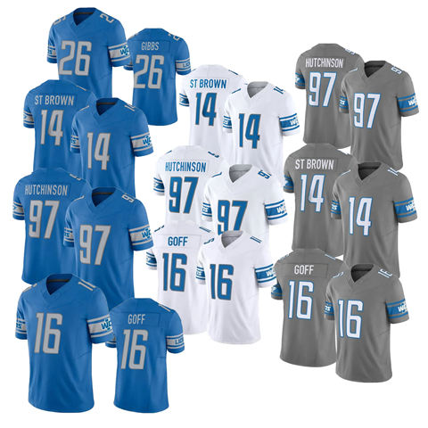 Cheap Men's 97 Aidan Hutchinson 14 St.Brown 16 Jared Goff 26 Jahmyr Gibbs 87 Sam LaPorta Stitched FUSE Limited Football Jersey