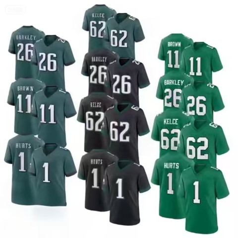 เสื้อฟุตบอลอเมริกันระบายอากาศได้ดีแบบใหม่ราคาถูก1 #เจ็บ11 #สีน้ำตาล26 # Barkley 62 # kelce